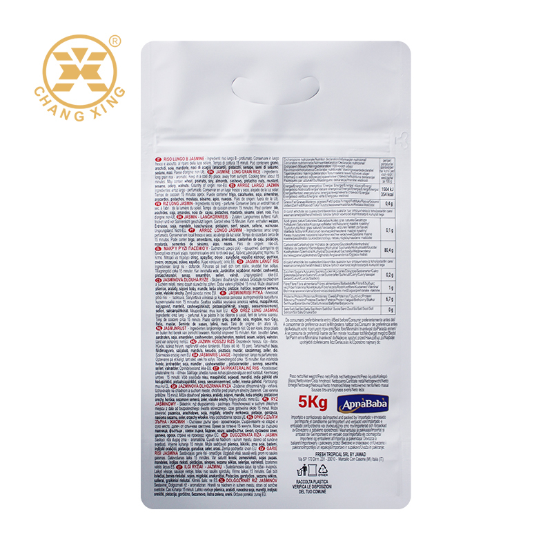 | प्रमुखता देना: | कस्टम डिजाइन फ्लैट तल चावल बैग,5 किलोग्राम बासमती चावल की ज़िप बैग,वारंटी के साथ प्लास्टिक चावल पैकेजिंग बैग |