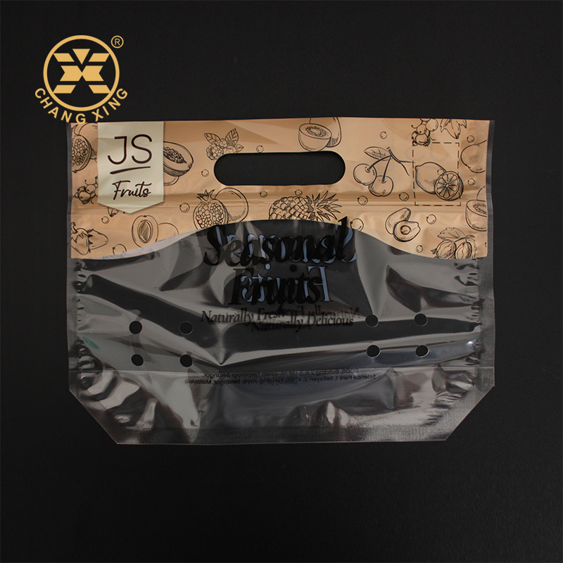 पुन: प्रयोज्य फल और सब्जियां छिद्रित बैग वेंट छेद पैकिंग प्लास्टिक जिपर बैग के साथ ताजे फल पाउच खड़े हो जाओ